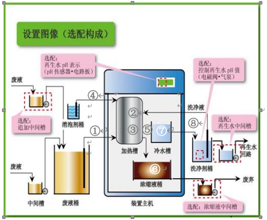 ⑧自动洗净时,机器外部的再生水再次吸取到浓缩锅 。